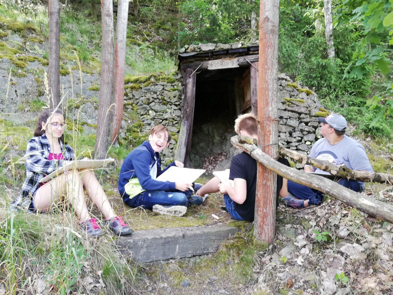 Projeli se také hornickými vagóny a nakonec grafickými fixy naskicovali různá zákoutí skanzenu. Prošli klasické stříbrské památky a ve stínu stromů u kostela Nanebevzetí Panny Marie dokončovali své práce.