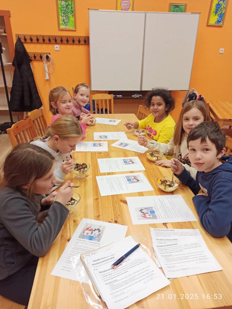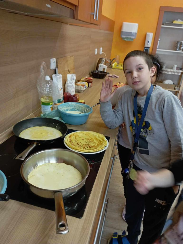 Pozdravy z kroužku vaření...nelenime a učíme se další recepty a společně nám i chutná.????..cítíte tu vůni?Byla třeba tvarohová miminka,chleba ve vajíčku a palačinky s ovocným salátem a zmrzlinou.
