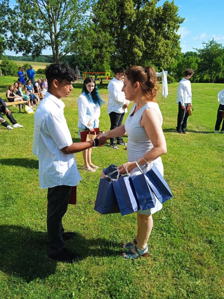 Předávání vysvědčení na muzejní zahradě